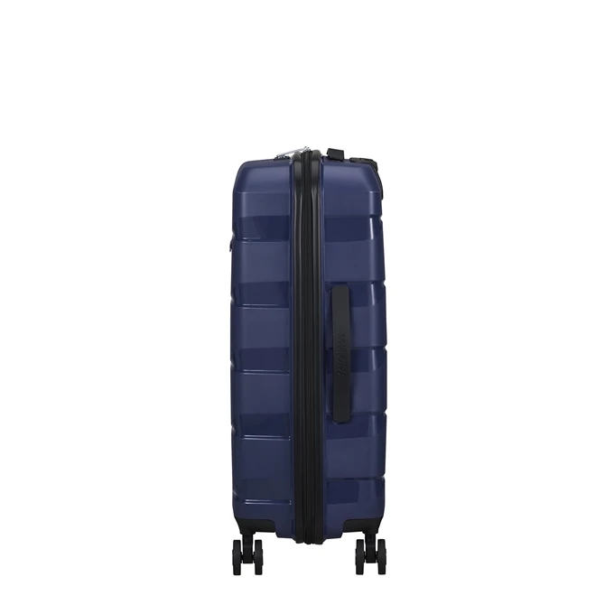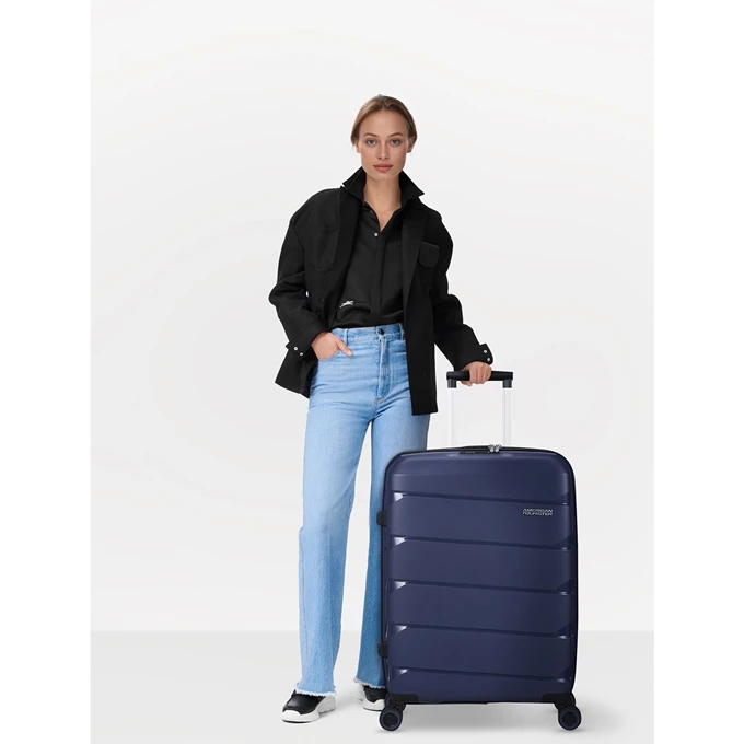 Het grote voordeel van een ruimbagage koffer ten opzichte van een handbagage koffer is dat je gewoonweg meer bagage kunt meenemen. Ga je dus voor langere tijd op reis, of wil je gewoon ruimte over hebben om zo ook eventuele aankopen weer mee te kunnen nemen, ga dan voor een ruimbagage koffer. Omdat je naast een ruimbagage koffer ook vaak een (gratis) tas of rugzak mee kunt nemen, heb je toch je essentials bij de hand tijdens de vlucht. Deze harde koffer uit de Air Move serie van American Tourister is gemaakt van recyclex en polypropyleen materiaal en je krijgt er 3 jaar garantie op. De koffer heeft 4 wielen; koffers met 4 wielen hebben meer stabiliteit en zijn wendbaarder dan koffers met 2 wielen.