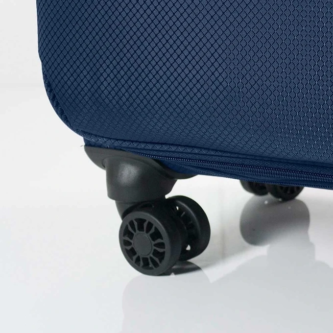 De koffer kan makkelijk worden vervoerd dankzij de vier soepele, dubbele wielen, de twee handvatten en de telescopische trekstang. Met het TSA-cijferslot kan de koffer op een veilige manier worden afgesloten.