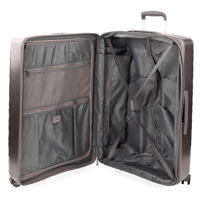 De Stellar Large 4 Wiel Trolley Exp van Roncato is een ruime, moderne koffer. Het interieur van de koffer bevat meerdere rits compartimenten en soepele inpakriemen om je kleding op zijn plek te houden. Dankzij de expandable mogelijkheid kun je de koffer 4 centimeter extra diepte geven. De koffer is gemaakt van sterk polycarbonaat materiaal waardoor de koffer tegen een stootje kan.