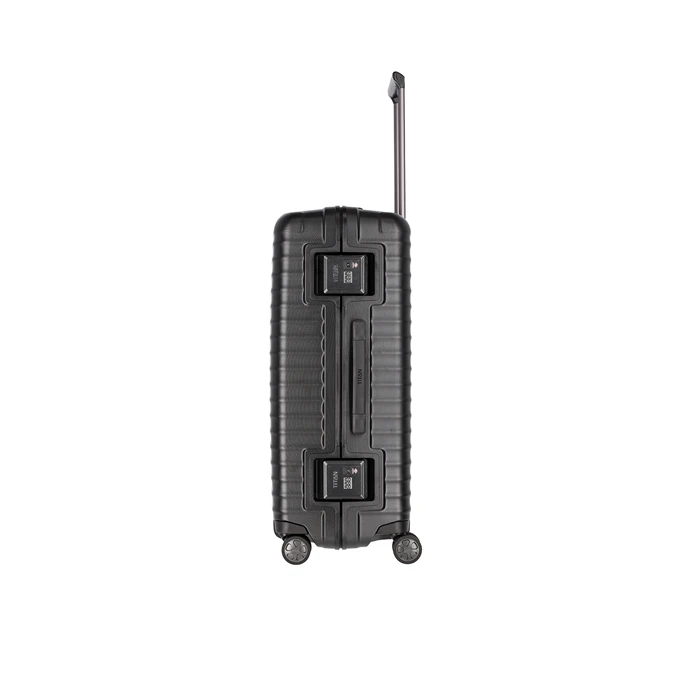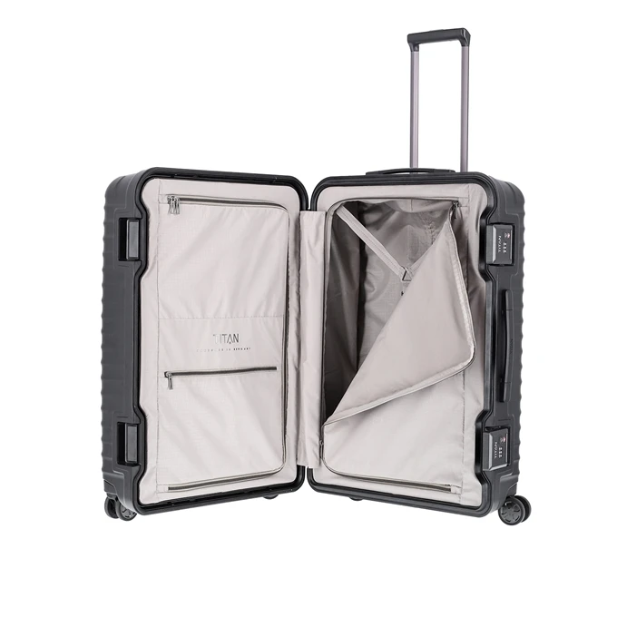 Op zoek naar de perfecte koffer om al je spullen in mee te nemen? Dan is deze Titan Litron Frame koffer misschien wel de perfecte keuze voor jou. Deze koffer is geschikt voor al jouw spullen tijdens je volgende (lange) vakantie of zakenreis. De harde koffer is een ruimbagage koffer, wat betekent dat je deze koffer niet mee mag nemen in het vliegtuig als handbagage, maar ingecheckt dient te worden als ruimbagage. Deze harde koffer is gemaakt van polycarbonaat en je krijgt een fabrieksgarantie van 3 jaar op deze koffer. Deze Titan koffer is voorzien van 4 wielen en wordt daarom ook wel een spinner koffer genoemd. Ten opzichte van een koffer met 2 wielen is een spinner koffer wendbaarder en kun je deze rechtop laten staan tijdens het vervoeren.